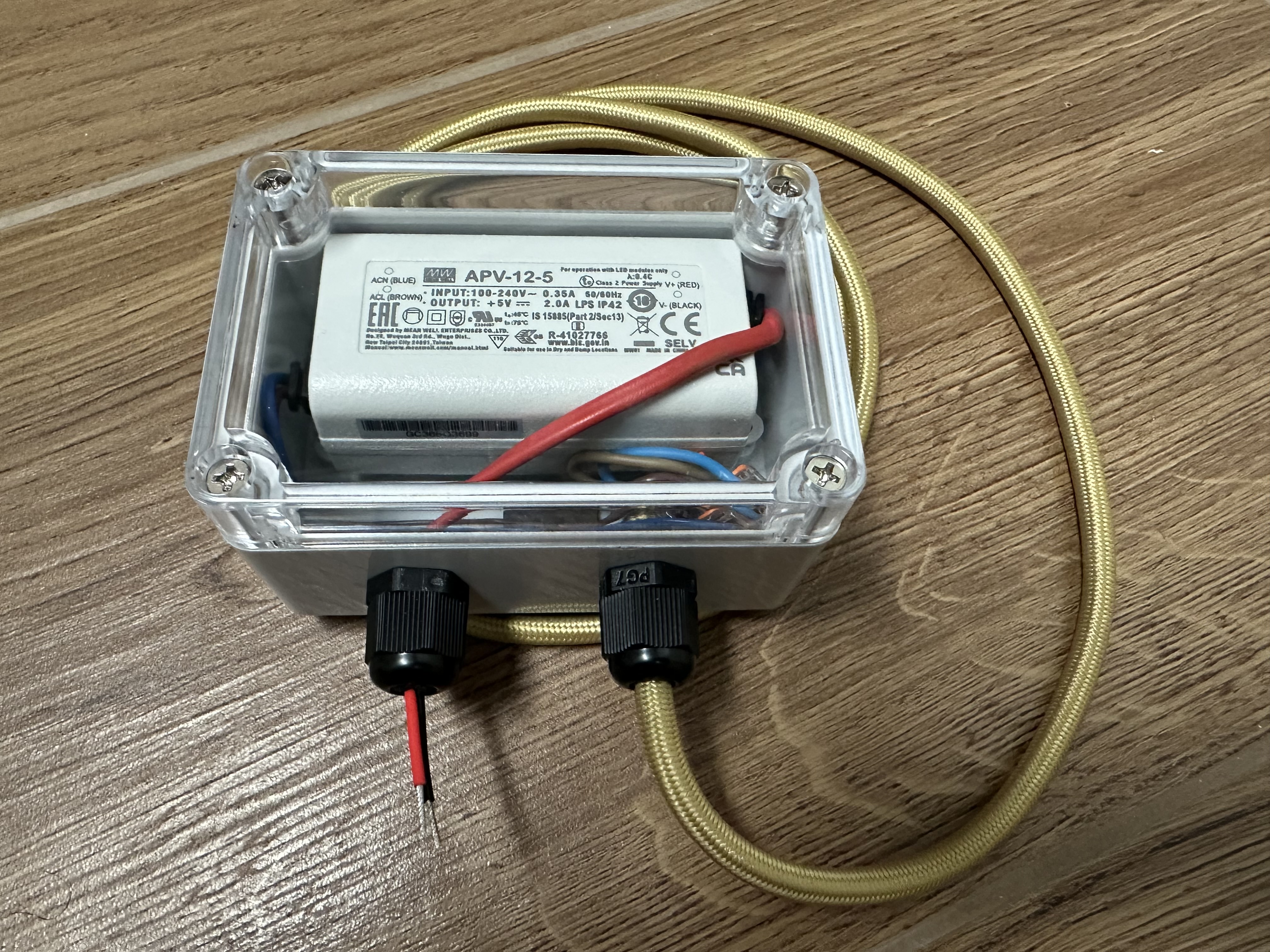 Sehr schöne 230V auf 5V Kombination inkl. Platz für eine kleine Platine