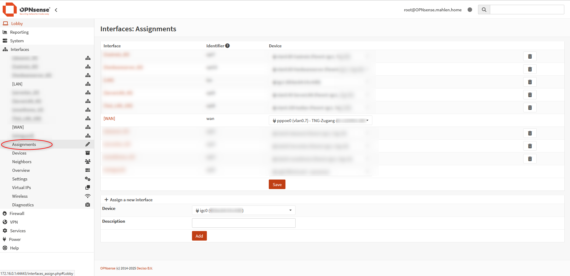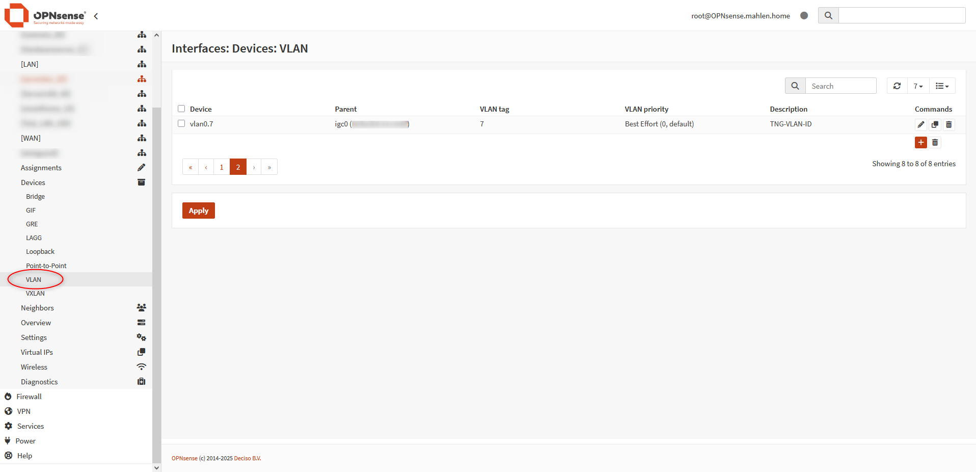 Dafür ins Menü auswählen: Interfaces → Devices → VLAN